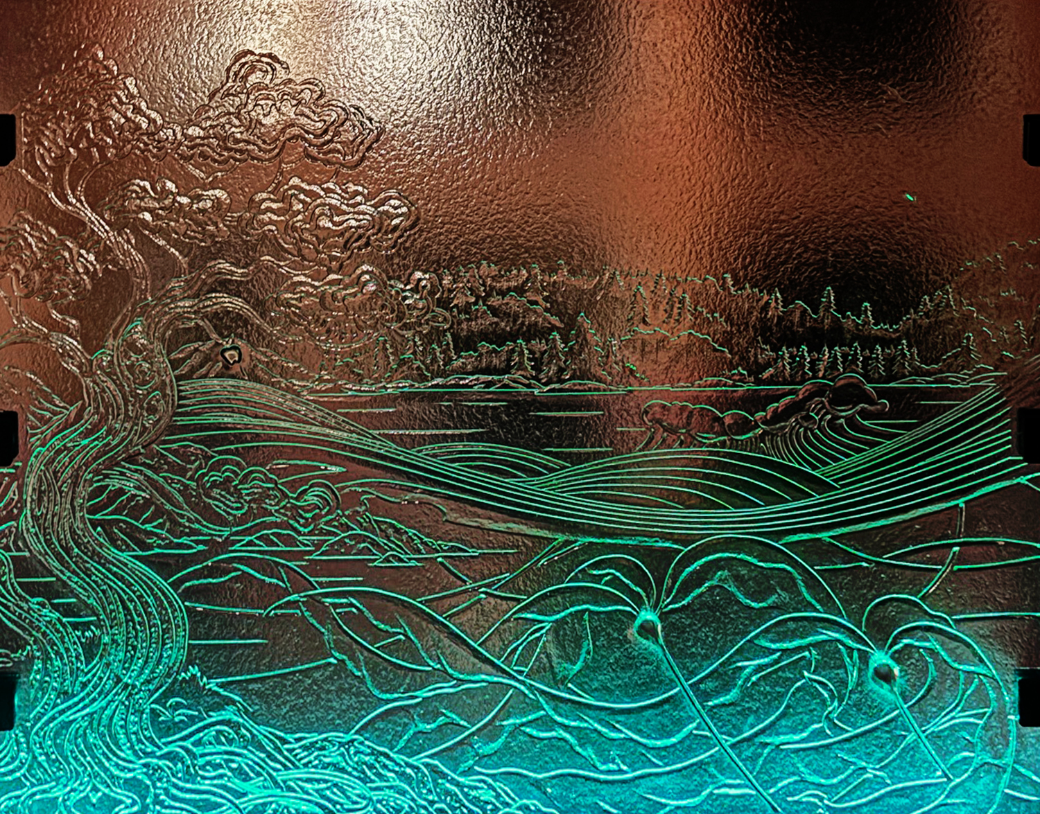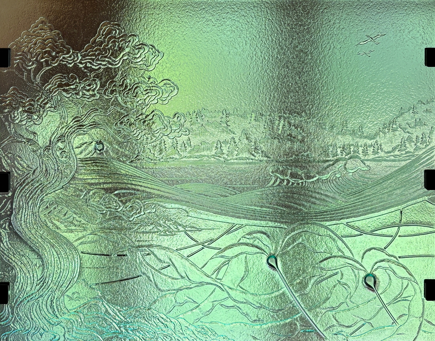 Our studio has over 30 years of experience learning and exploring new glass forming techniques. Using our chosen medium of architectural glass, we use a combination of sand and ceramic fiber to create our one-of-a-kind panels. Each panel goes under rigorous quality control before and after tempering, and are individually polished and inspected before installation.